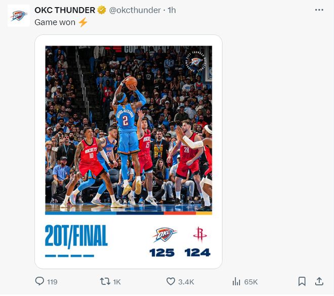 火箭以124-125不敌雷霆,揭幕战进入双节。两支球队都非常强大。最终,斯加让杜兰特第六次犯规,利用罚球绝杀了火箭。 SGA和沉静两位超巨得分均达到35+。但本场比赛第一个加时赛中有一个非常戏剧性的一幕,那就是杜兰特保护后场篮板后暂停。这一次,火箭和雷霆都没有退出。如果用这个动作的话就是T,但是裁判不会吹罚球。因为裁判没有给杜兰特打T,雷霆队主帅德姆-波特勃然大怒。他跑到球场向裁判投诉。哈滕和斯加都要求裁判重赛。看回放可以看到杜兰特制造了时间,但是三位裁判仍然没有看回放,比赛进入了第二个加时。美媒SC写道,第一个小时后,杜兰特似乎做出了暂停的手势。火箭队并没有放弃。他应该领到技术犯规,雷霆队可以通过罚球提前杀死比赛。 NBA官方裁判回应为何不给杜兰特T写的官方:三位裁判都没有看到杜兰特签名计时的行为,这也是杜兰特没有被判技术犯规的原因。本场比赛的主裁判扎克·扎巴也在赛后解释道:第一个加时赛结束时,杜兰特并没有因为叫暂停而被判技术犯规,因为我们的三名裁判都没有看到杜兰特暂停,这也是杜兰特没有被判技术犯规的原因。不过,赛后杜兰特仍然为球队的失利承担了责任。他说:常规时间丢了最关键的发球局,第二个加时赛犯规让对手领先1分。我认为这两次轮换就是我们输球的原因。杜兰特首秀47分钟,16中9,拿下23分9篮板3助攻6犯规4失误。作为球队的第二控卫,他的表现非常出色。